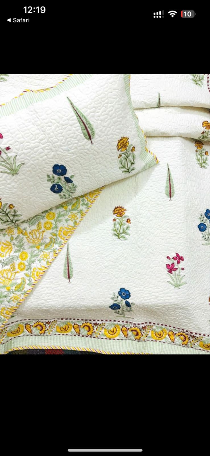 Mughal Print Hand Block Quilted Bedcover King size 90*108