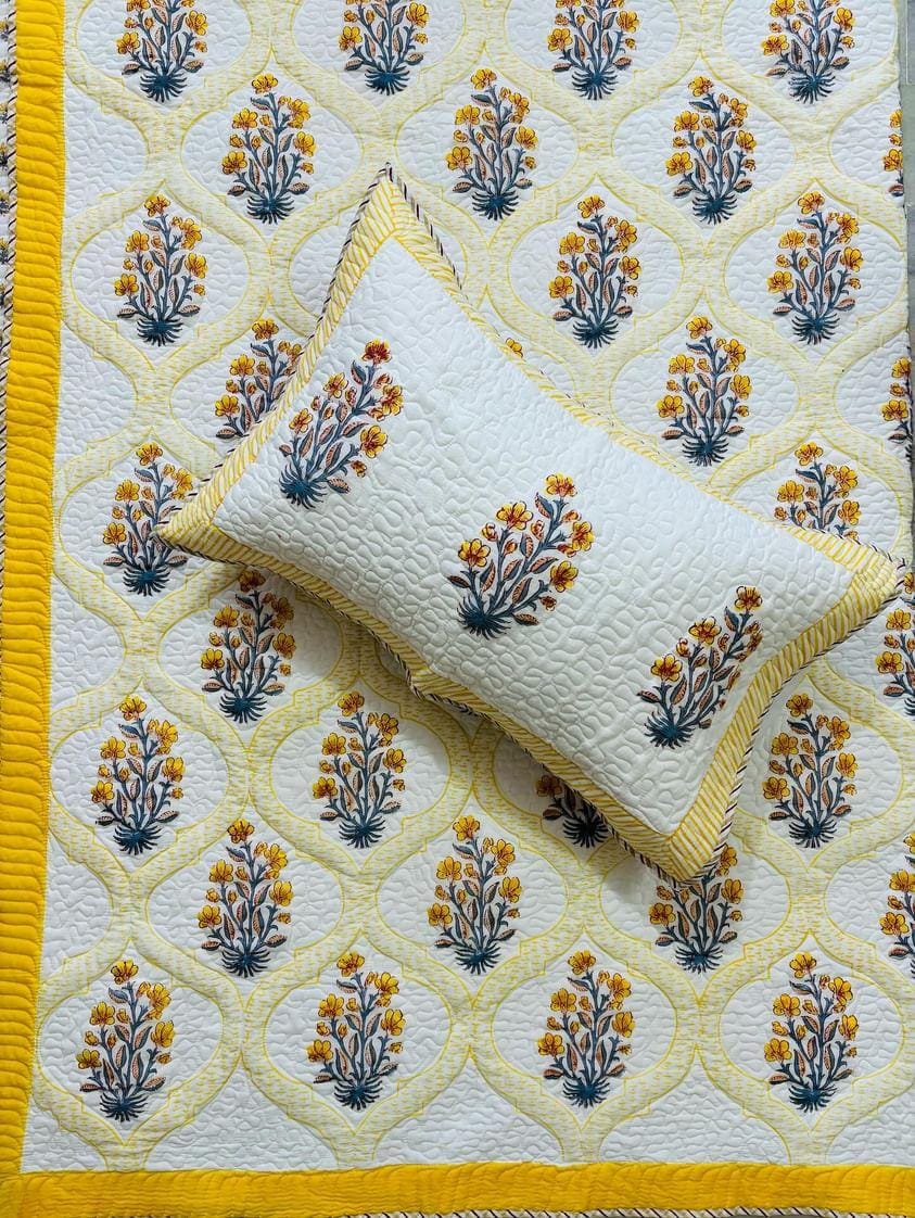 Mughal Print Hand Block Quilted Bedcover King size 90*108